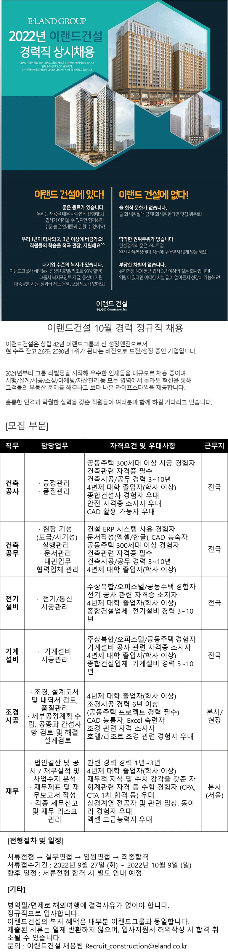 본 정보는 이랜드건설에서 건설워커에 제공한 자료이며 등록일(22.09.29.) 기준으로 유효한 정보입니다.