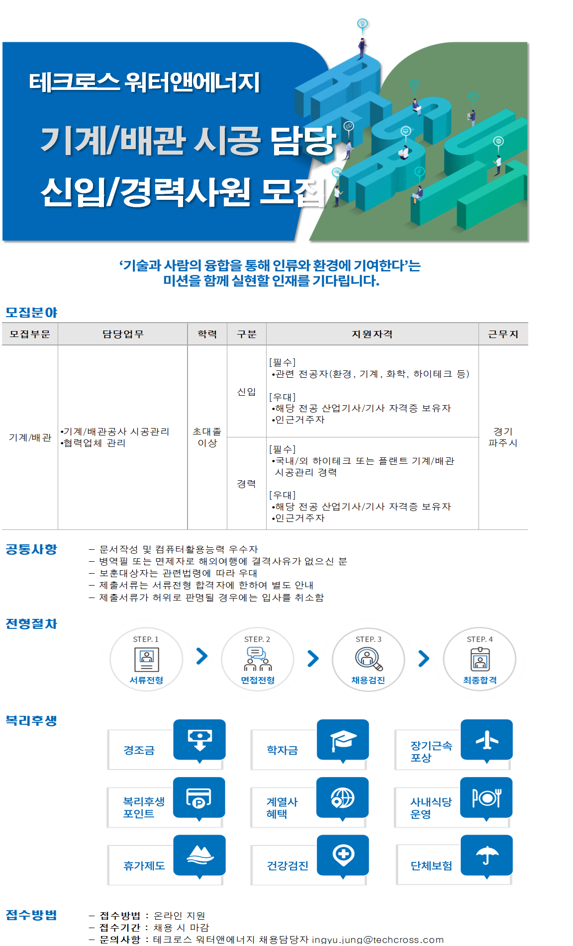 #테크로스워터앤에너지 #채용 #LGD파주현장 #기계 #배관 #신입사원 #경력사원 #건설취업 #건설워커