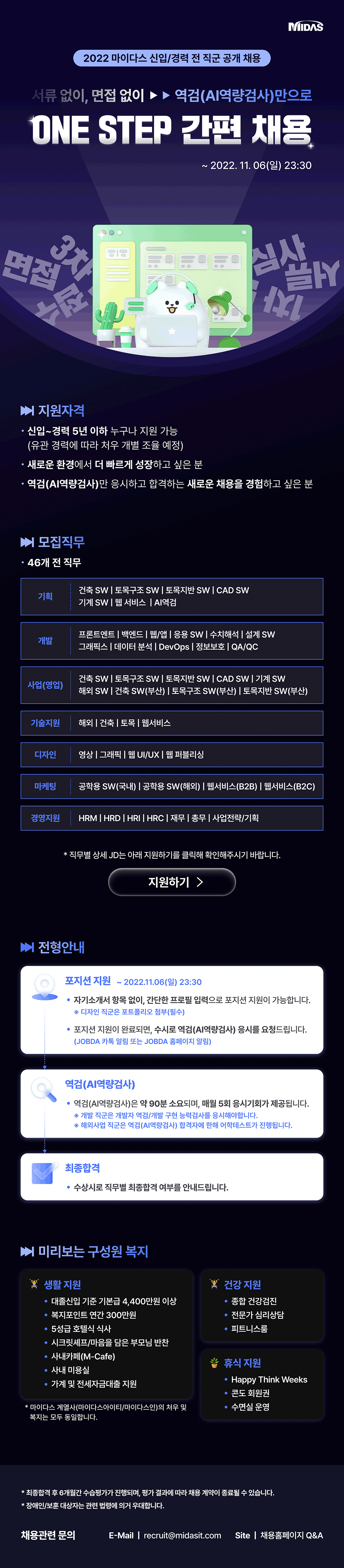 마이다스아이티를 역동적으로 살아 움직이게 하는 원천은 항상 최고를 향한 최선의 노력을 아끼지 않는 마이다스아이티의 모든 구성원입니다.