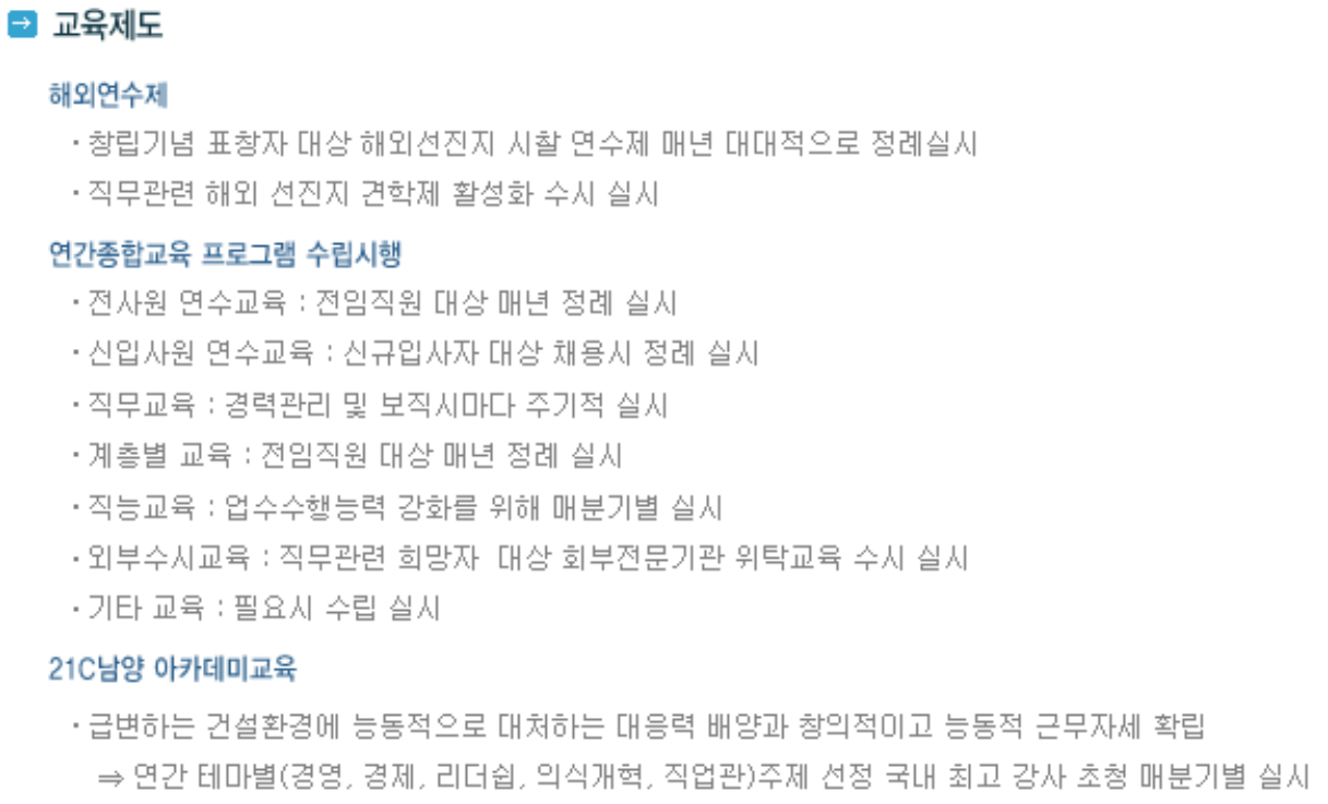 기업개요 회사명 : 남양건설(주) 대표자 : 마찬호 / (회장 마형렬) 기업구분 : 중견기업 설립일 : 1958년05월01일 사업자등록번호 : 412-81-02461 매출액 : 1,595억 7,120만 (2021.12.GAAP 개별) 자본금 : 67