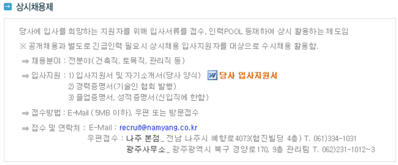 서류전형, 면접전형, 신체검사, 최종합격 순