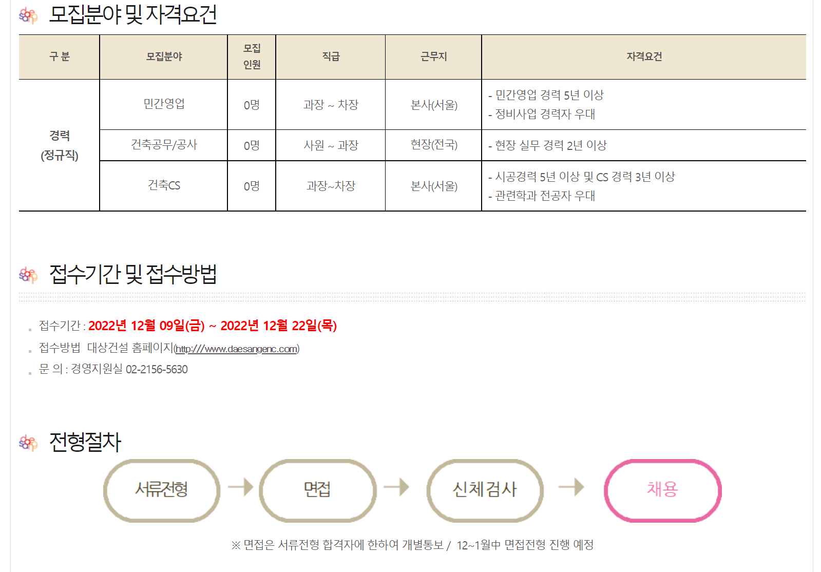 대상건설 [민간영업/건축/CS] 정규직 경력사원 모집