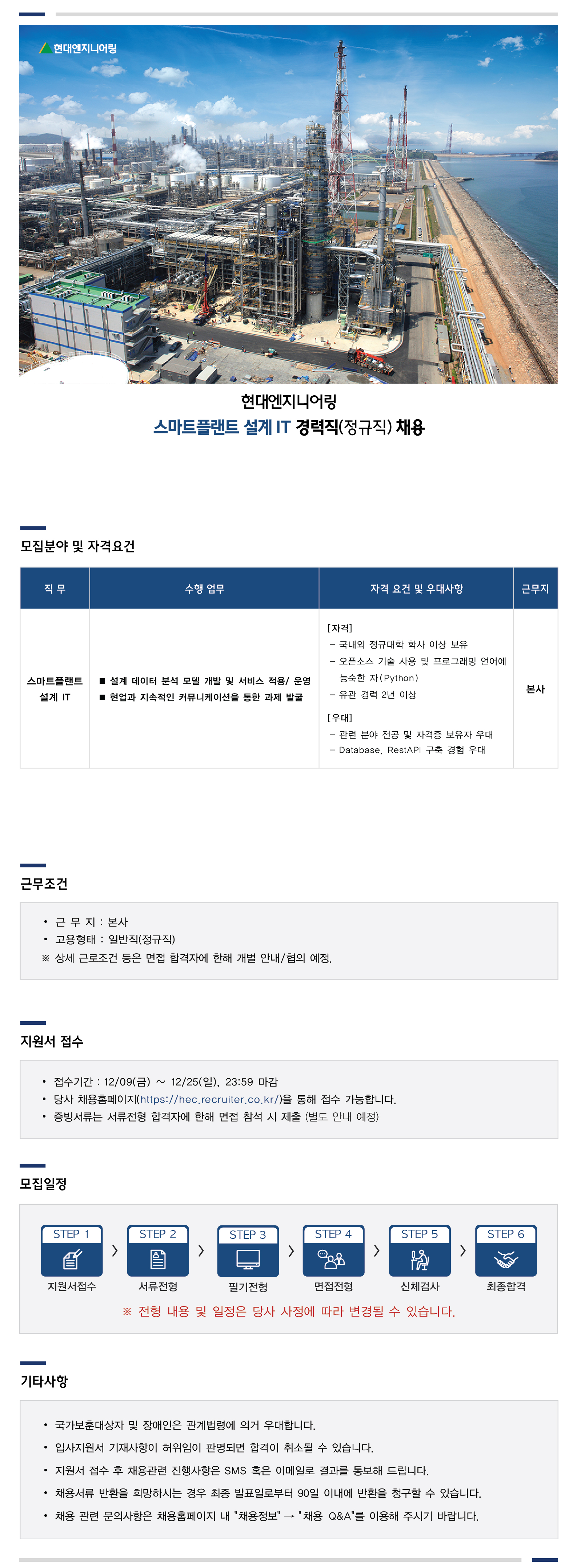 현대엔지니어링 스마트플랜트 설계 IT 경력직(정규직) 채용