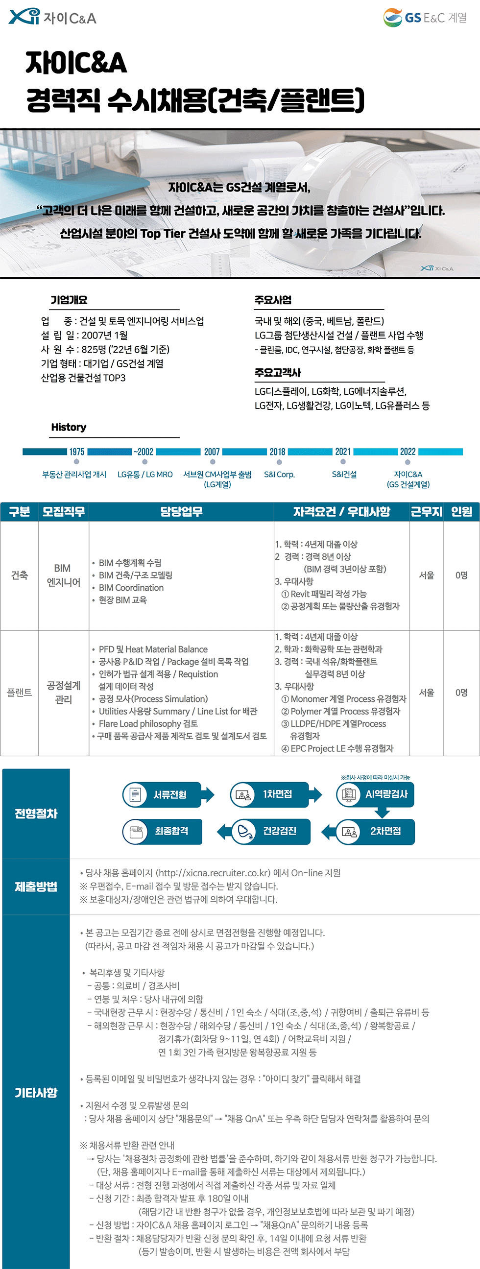 자이씨앤에이 건축/플랜트 수시채용 경력직
