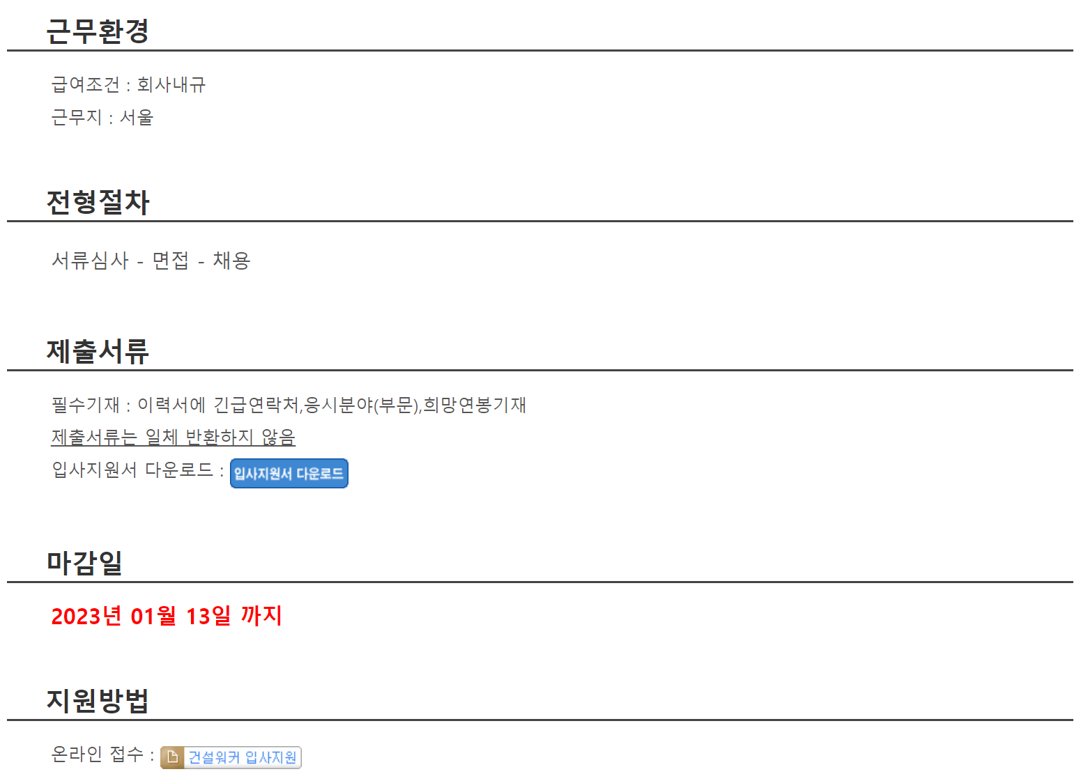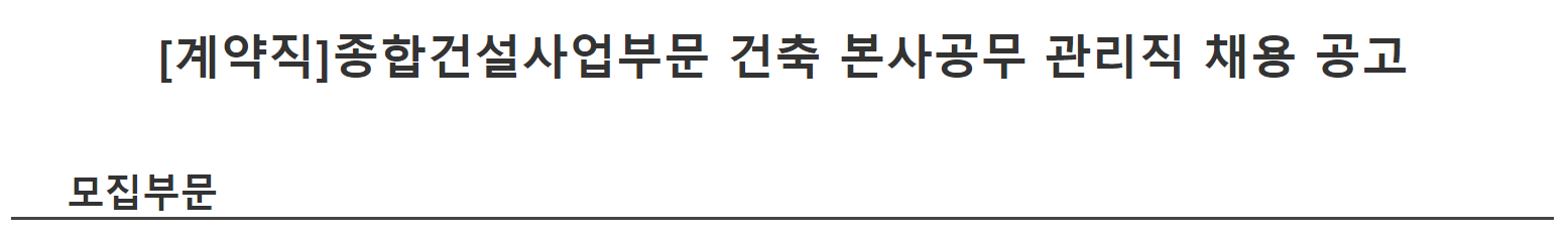 모집부문 : [계약직]건축 본사공무 관리직