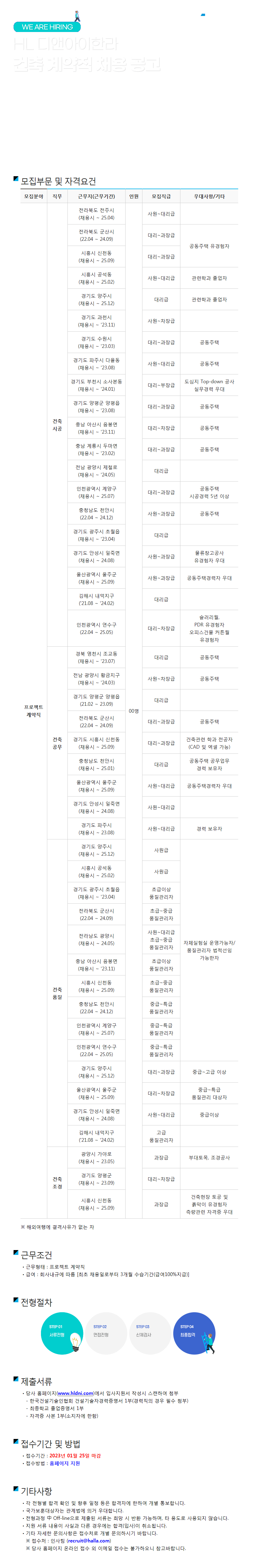 HL디앤아이한라(D&I Halla) 건축 계약직 채용공고