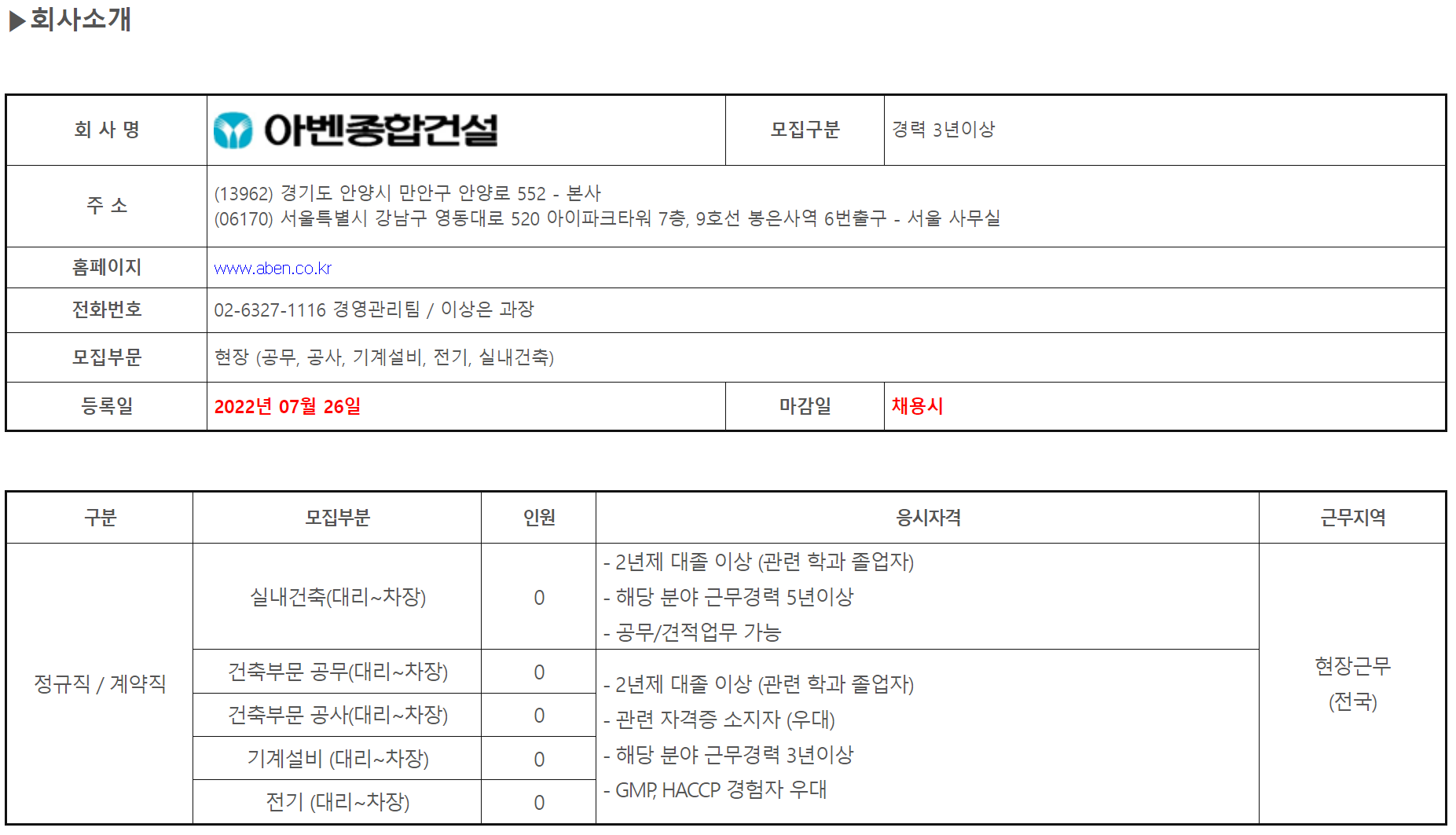 - 본 정보는 국내 최초, 최대의 건설전문취업포털 1위 [건설워커]에서 제공합니다.