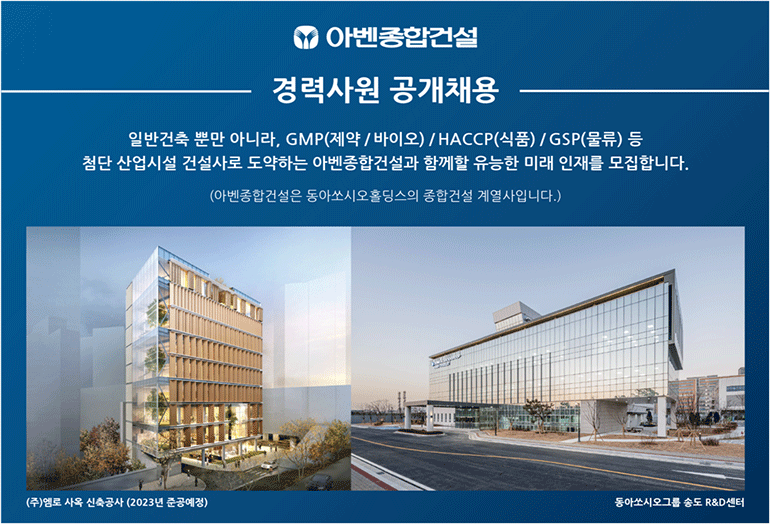 회사명 아벤종합건설(동아쏘시오그룹 계열 건설사)