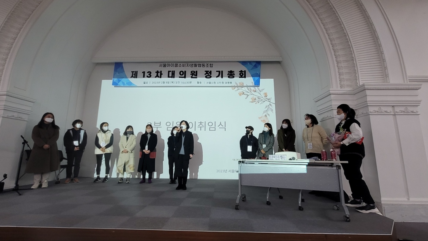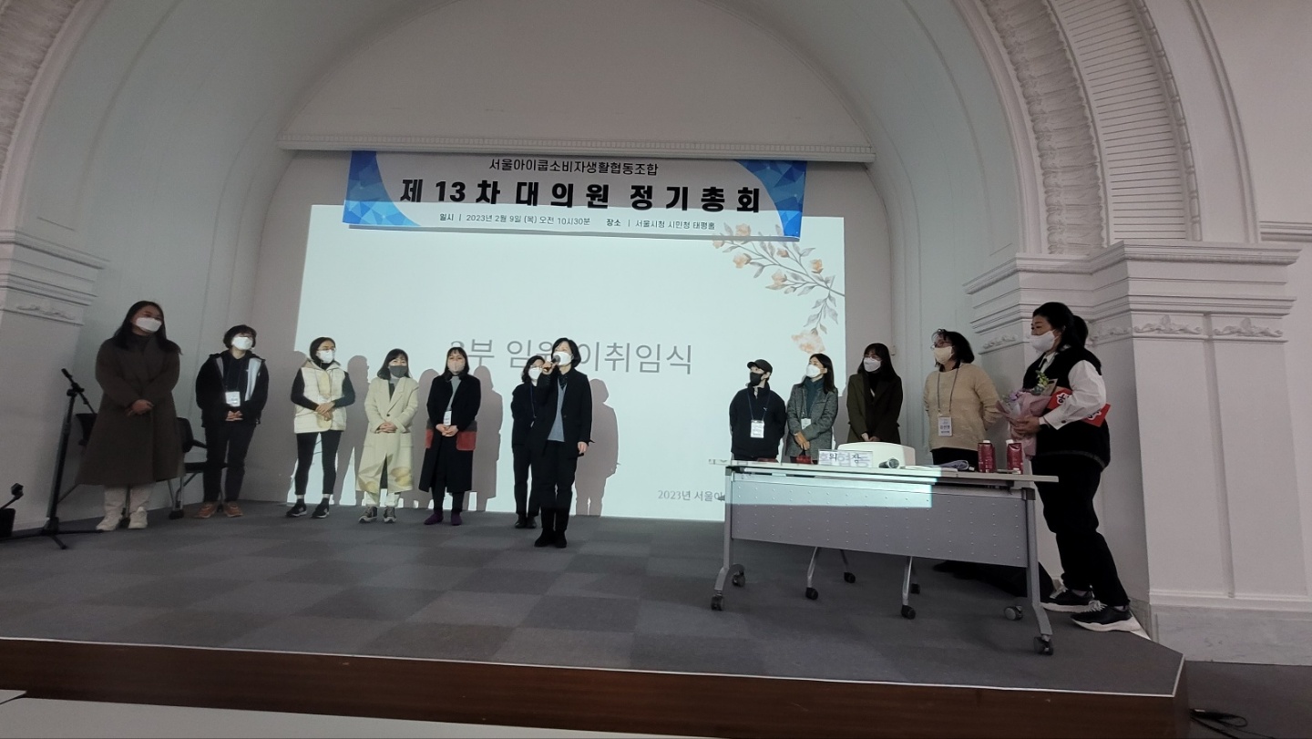 서울아이쿱생협 제13차 대의원 정기총회 및 이사 이취임식이 2023년 2월 9일 목요일 서울시청 시민청 태평홀에서 열렸다.