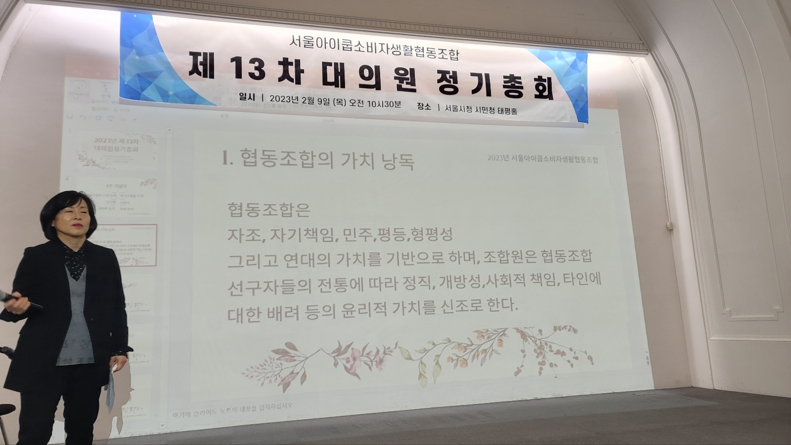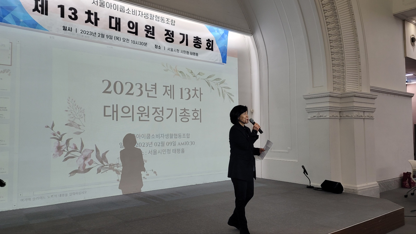 #서울아이쿱생협 #제13차대의원정기총회 #1부기념식_사회자 #이사퇴임식 #2023년2월9일 #서울시청시민청태평홀