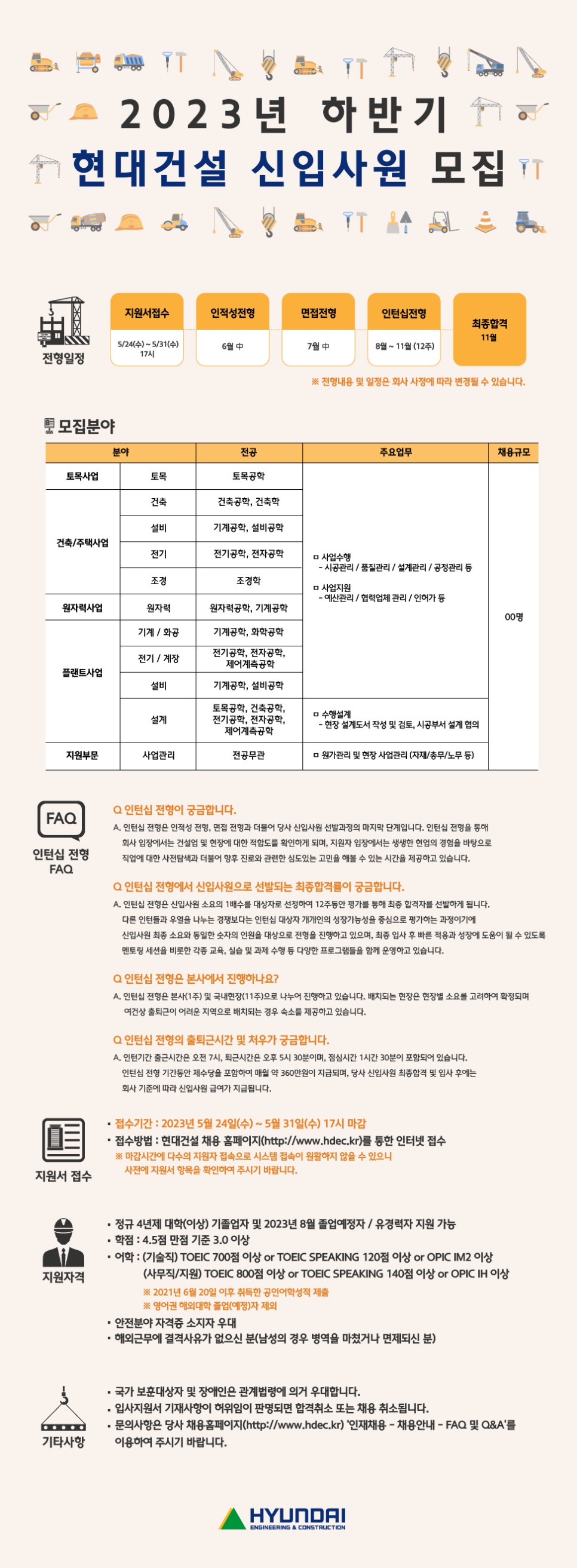 현대건설 신입사원 모집 인턴십 전형 FAQ