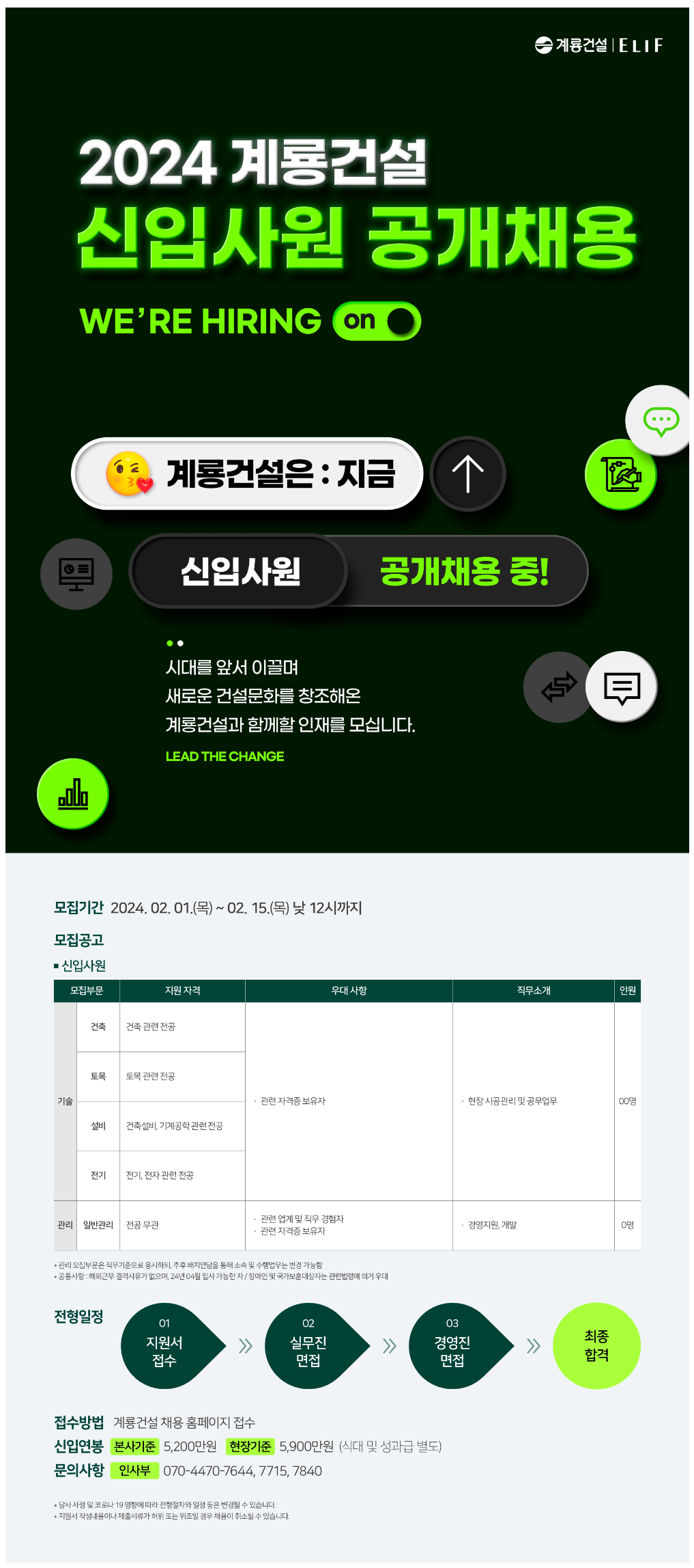 계룡건설 채용& 연봉(본사,현장)
