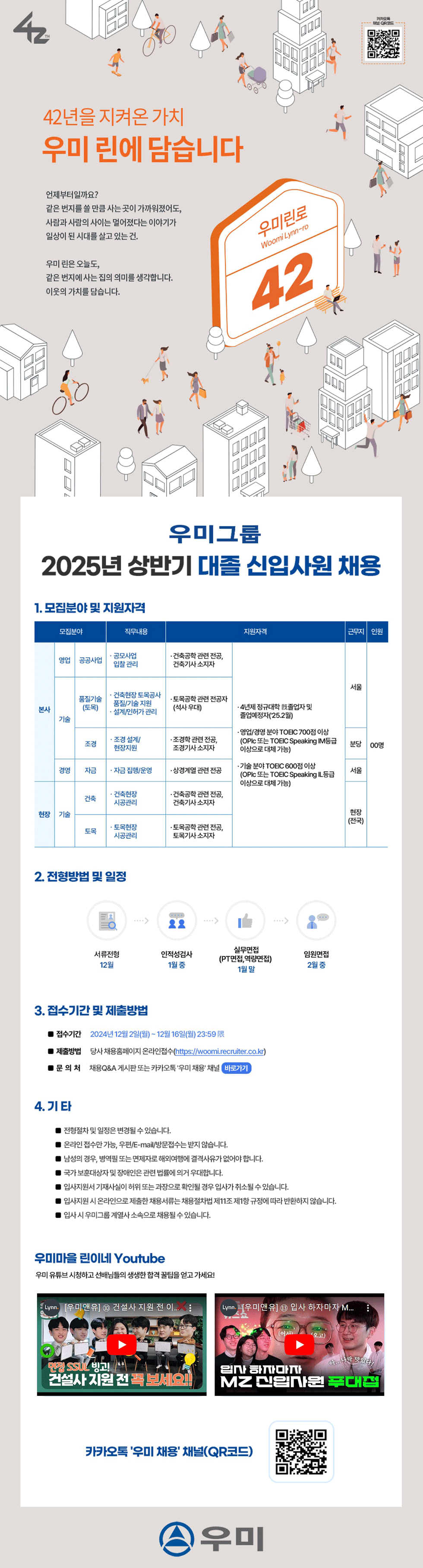[우미건설(주)] [우미그룹] 2025년 상반기 대졸 신입사원 채용 (마감일 : 12/16) - 건설취업 건설워커