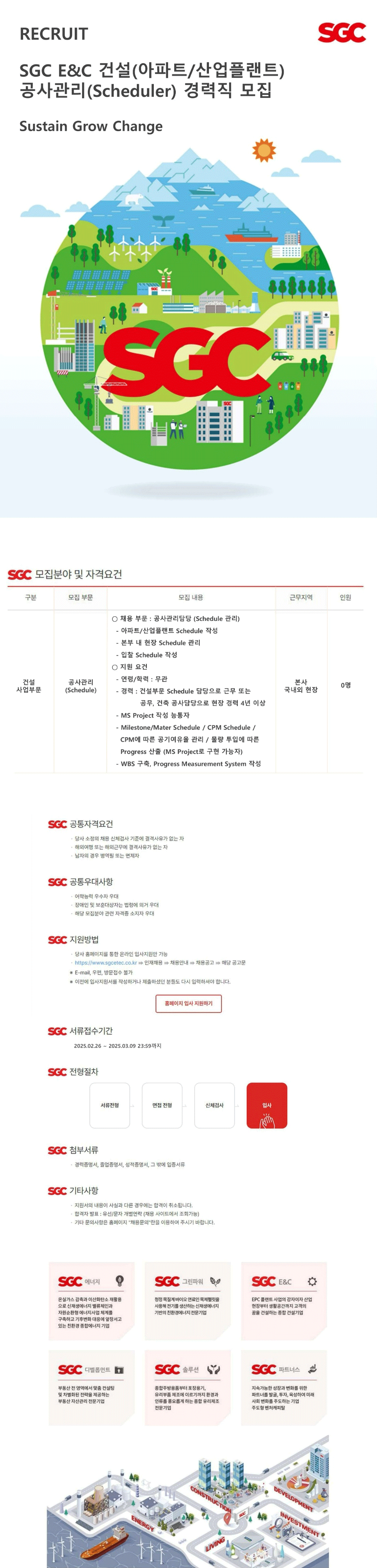 - 지원방법: SGC이앤씨 공식 홈페이지 온라인 접수 (이메일, 우편, 방문 접수 불가)