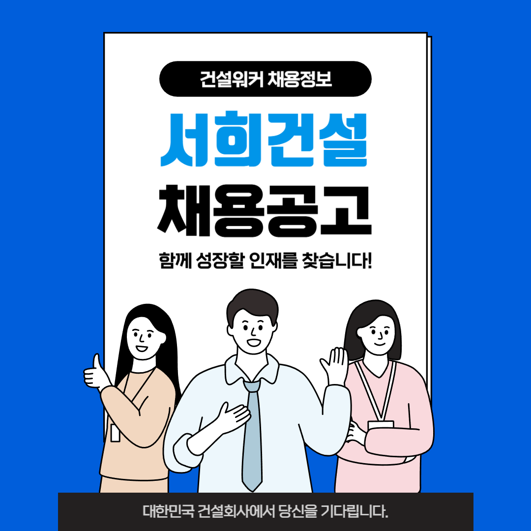 서희건설, 2025년 건설현장 신입 및 경력 상시채용(인재DB)